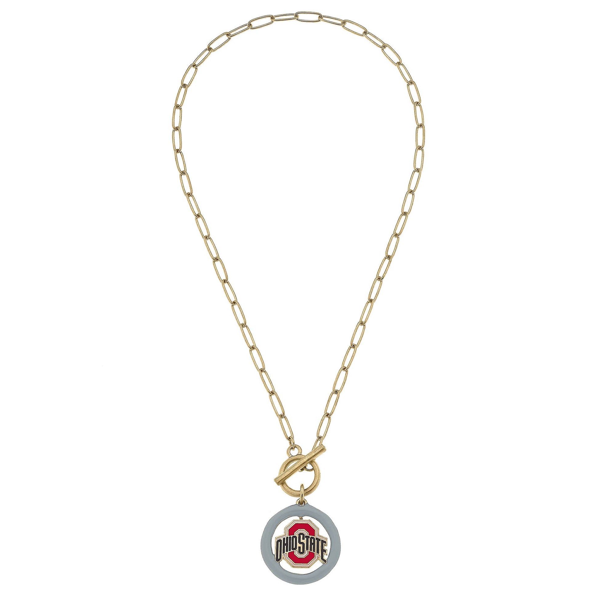 Show off your school spirit with our lightweight Ohio State Buckeyes Logo Enamel T-Bar Necklace! Perfect for all-day wear, this necklace features the Ohio State University logo in gray and scarlet.